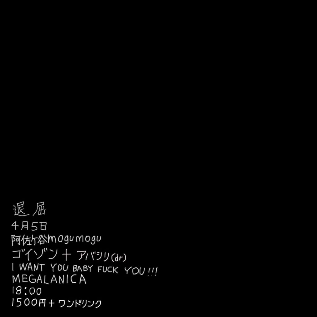 2026.4.5 (sun) at 阿佐ヶ谷mogumogu / I Want You Baby Fuck You!!! presents “退屈”